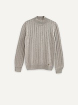 Джемпер свободного силуэта. Рукава длинные, втачные. Линия плеча спущена. Перед и спинка цельнокроенные. Горловина круглой формы обработана обтачкой из рибаны. Шов притачивания обтачки распошит. По низу рукавов и джемпера притачены манжеты и пояс из рибаны.