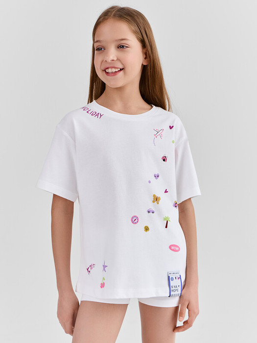 Благодаря прочности и устойчивости к деформации, футболка сохраняет аккуратный вид после множества стирок. Универсальный фасон легко комбинировать с джинсами, юбками, кардиганами или жилетами — она будет одинаково уместна в школе, на прогулке или на празднике.