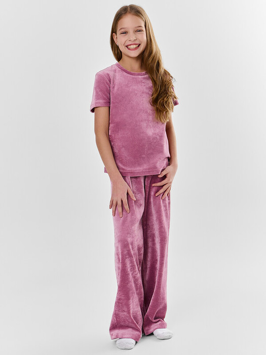 Брюки свободного силуэта. Пояс цельнокроеный внутри с резиной 40RV. Низ брюк в подгибку.