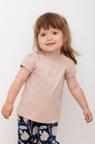 Футболка свободного кроя, втачной рукав. Горловина окантована бейкой из рибаны