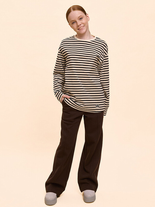 Джемпер оверсайз для девочки. Лонгслив актуального свободного силуэта со спущенным плечом. Джемпер в полоску с прямым рукавом поможет создать стильный расслабленный образ. Горловина обработана эластичной рибаной — легко надевать и снимать лонгслив, при этом рибана надолго сохраняет отличную форму. Интересная деталь — по низу изделия и по низу рукавов широкая подгибка. За лонгсливом легко ухаживать. В составе ткани 100% высококачественного хлопка — джемпер приятен на ощупь и прекрасно пропускает воздух, давая коже ребёнка дышать. Джемпер с принтом в классическую горизонтальную полоску — базовая вещь в детском гардеробе, отлично сочетается с любыми цветами, подходит для интересных многослойных образов. По переду снизу забавная маленькая деталь — нашивка  чёрный котик. Принты мягкие и эластичные — великолепно переносят частые стирки. Полосатый лонгслив легко сочетать с любыми брюками, легинсами, джинсами. Модель подходит как маленьким девочкам дошкольного и младшего школьного возраста, так и и девочкам-подросткам. Такие джемперы идеальны для прогулок, активного отдыха, их можно носить дома. Помните о правильном уходе за изделием: рекомендуется стирать при температуре не выше 30 °C, без предварительного замачивания, с изнанки. Это поможет сохранить качество и цвет джемпера на длительное время.