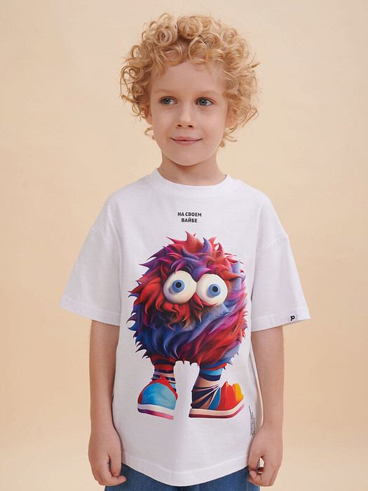 Детская футболка оверсайз. Комфортный джемпер свободного силуэта со спущенным плечом не будет стеснять движений ребёнка. Объёмная майка подарит ощущение комфорта и уюта. Вырез горловины отделан эластичной рибаной (ткань в рубчик) — она прекрасно держит форму, при этом ребёнку удобно надевать и снимать футболку. Модель неприхотлива в уходе. Главная фишка футболки — яркий стильный принт, изображающий персонажа, сгенерированного нейросетью (искусственным интеллектом). Это супермодный тренд! Футболка с прикольным принтом по переду выполнена из 100% высококачественного хлопка — изделие мягкое и воздухопроницаемое, что позволяет коже ребёнка свободно дышать. Принт эластичный и стойкий — без проблем переносит многочисленные стирки, не теряя своей яркости. На принте изображён смешной яркий пушистый чудик в полосатых носках + надписи "на своём вайбе" и "создано с помощью искусственного интеллекта". Футболка оверсайз белая универсальна, подходит и для девочек, и для мальчиков. Как для малышей дошкольного и младшего школьного возраста, так и для подростков. Модель идеальна для детского сада, спорта, прогулок, отдыха, а также в качестве домашней одежды. В линейке представлены следующие размеры: 1 (86); 2 (92); 3 (98); 4 (104); 5 (110); 6 (116); 7 (122); 8 (128); 9 (134); 10 (140); 11 (146). Белые футболки подходят для носки летом, осенью и весной (демисезон), зимой в качестве среднего слоя одежды. Легко сочетается с различными брюками, джинсами, юбками, легинсами и шортами. Футболка с принтом оверсайз — стильный и красивый подарок сыну, дочери, внуку или внучке на любой праздник. Выбирайте нужный размер по таблице размеров на фото. Цвет товара на экране вашего устройства может отличаться от цвета изделия вживую.