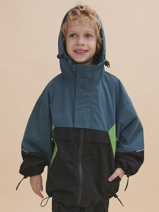 Укороченная ветровка с цельнокроеным рукавом для мальчиков. Стиль куртке придают разноцветные резные вставки - тренд сезона Весна 23. Модель свободного современного кроя, увеличенного объема и c цельнокроеным рукавом. Наличие в составе ткани мембраны делает куртку максимально комфортной при носке. РЕКОМЕНДУЕМЫЙ ТЕМПЕРАТУРНЫЙ РЕЖИМ не ниже +10°С. Водоотталкивающая пропитка (DWR) наносится на внешнюю поверхность ткани и задерживает грязь и влагу снаружи. Дополнительный слой на внутренней стороне ткани не позволяет ребенку промокнуть. Хлопковый трикотаж в капюшоне и по стану - хорошая воздухопроницаемость, ребенок не вспотеет, в рукавах подклад из полиэстера - для удобства надевания. Капюшон двухшовный - хорошо сидит на голове, неотстегивающийся. Регулировка объема капюшона, низа рукавов и куртки, а также внутренняя ветрозащитная планка и наружная на липе - дополнительное тепло.  Центральная застежка: тракторная молния. Не заедает! Тканевый стоппер защищает подбородок от зажима молнией. Фиксирующая строчка предо
