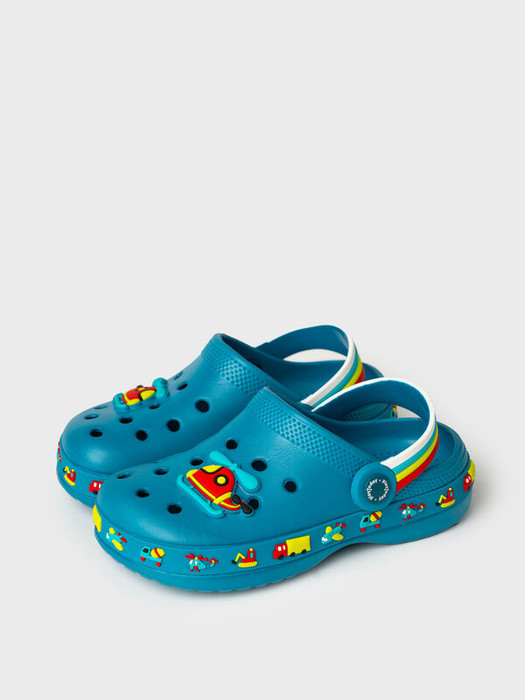Сабо детские для мальчика. Сабо из облегченного и прочного ЭВА. Материал хорошо моется. Модель украшена джибицами. Форма модели учитывает эргономику стопы. Модель имеет перекидной ремешок для лучшей фиксации обуви на ноге.  Благодаря вентиляционным отверстиям сабо проветриваются, ноги ребенка дышат и не потеют.