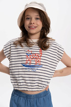 Свободная футболка из 100% хлопка отлично впишется в твой летний гардероб. Горловина оформлена эластичной окантовкой. По переду трендовая набивка.