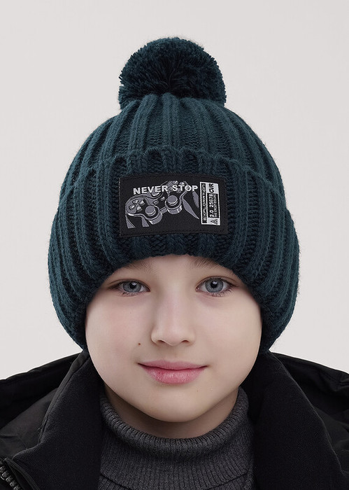 13.01 Clever Шапка детская для мальчика CLE 454154ап флис т.зелёный
