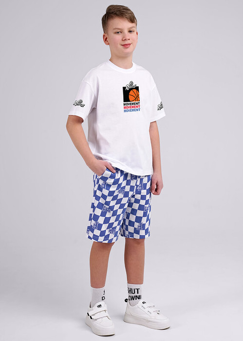 Шорты с принтом ""шахматка"" - ультрамодный вариант для этого лета! Практичный цвет и умеренный объем. Выполнены из приятного дышащего пике. Для удобства добавлены боковые карманы.
