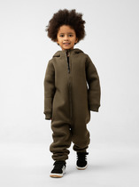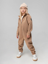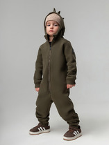 Флисовый комбинезон для мальчика с высоким воротником. Застёгивается на удлинённую молнию с мягкой защитой шеи и подбородка. Рукава и низ изделия на манжетах из  трикотажа в рубчик. Эластичная резинка по спинке обеспечивает идеальную посадку. Спереди удобный карман-кенгуру. Оригинальная набивка выполнена из стойких гипоаллергенных текстильных красителей. Комбинезон сохраняет цвет и форму после многократных стирок.