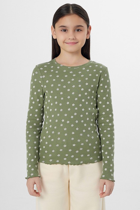 Однотонный джемпер прилегающего силуэта для девочек. Вырез круглый, не глубокий. Рукава длинные. Фактура полотна – в рубчик. Идеально для школы и мероприятий, предполагающих деловой стиль одежды.