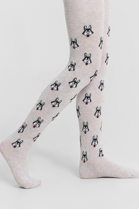 Рис.3216 Колготки гладкие с рисунком в виде хаски.