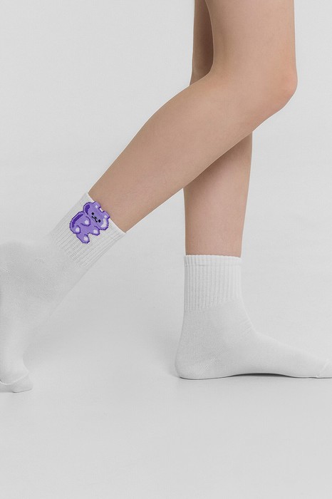 рис. 2845 Детский носок с высоким плотным бортом, рисунком в виде мишки с элементом пикота на бортике.