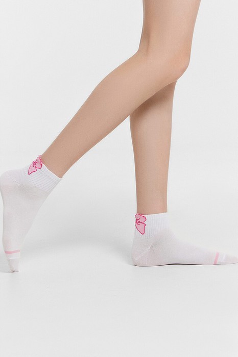рис.3193 Гладкий детский носок с резинкой, средней высоты и рисунком в виде бантика.