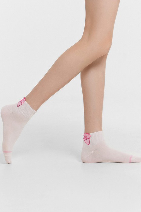 рис.3193 Гладкий детский носок с резинкой, средней высоты и рисунком в виде бантика.