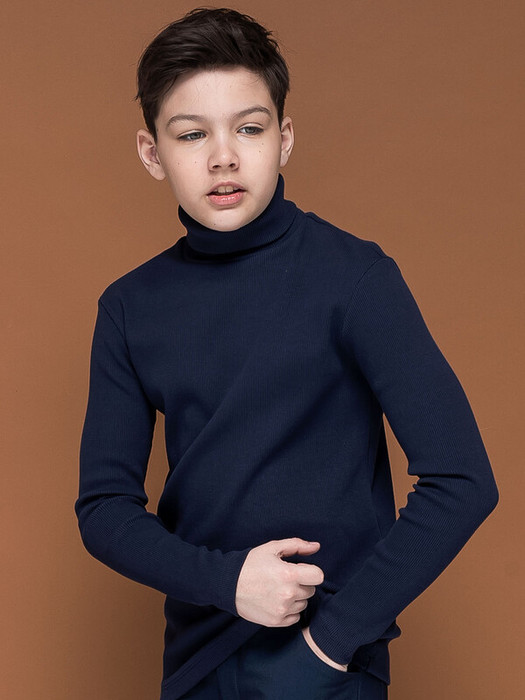 Водолазка из модной ткани в рубчик для мальчика. В составе ткани преобладает хлопок — модель мягкая, тактильно приятная и пропускает воздух. Эластан помогает сохранять форму. Воротник-стойка позволяет удобно надевать и снимать изделие, при этом он отлично сохраняет форму. Водолазку лаконичного дизайна легко сочетать с различными брюками, пиджаками, жилетами, это идеальная база гардероба. Стильный и практичный вариант школьной одежды для мальчиков.