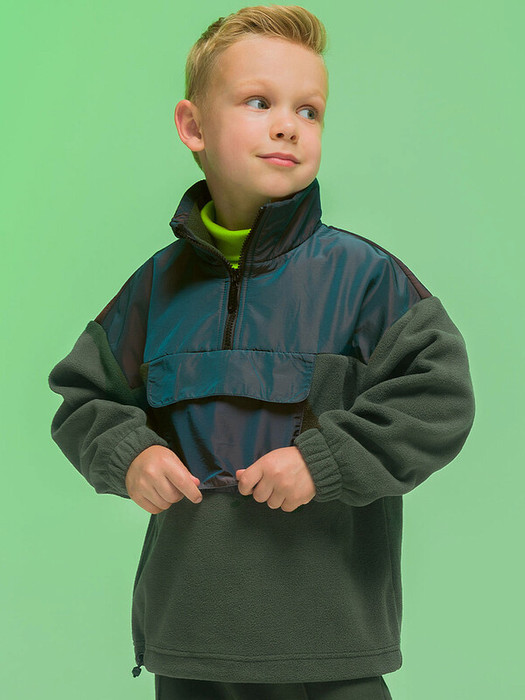Детский анорак для мальчика. Куртка выполнена в сочетании двух материалов: флиса и гладкой курточной ткани. Это супермодный тренд. Кокетка и карман из курточной ткани — максимум практичности: ребенок не промокнет и карман не замарается при частом использовании.  Анорак оверсайз-силуэта со спущенным плечом подарит ребёнку комфорт и свободу движения. Высокий воротник-стойка защищает от холода и ветра. По переду застёжка на короткую молнию — актуально в этом сезоне. Тканевый стоппер защищает подбородок от зажима молнией. В манжетах рукавов комфортная широкая резинка. По низу изделия предусмотрена утяжка для регулировки объема. По переду объёмный карман-портфель из курточной ткани с клапаном, застегивается на липу (велькро). Детский анорак однотонный, без принта. За ним легко ухаживать. Оба материала состоят из полиэстера  — куртка тёплая, лёгкая, мягкая, просто стирается и быстро сохнет, не выгорает и не скатывается, сохраняет великолепную форму надолго. Анорак выполнен в трендовом зеленом цвете . В линейке представлены следующие размеры: 1 (86); 2 (92); 3 (98); 4 (104); 5 (110); 6 (116); 7 (122); 8 (128); 9 (134); 10 (140); 11 (146). Прекрасная куртка на мальчика дошкольного и младшего школьного возраста, а также подростка. Подходит для детского сада, прогулок, активного отдыха, спорта. Отличная куртка на осень и весну (демисезон), а также прохладное лето. Она может заменить ветровку в начале осени или конце весны, а зимой послужит тёплым средним слоем одежды. Прекрасный подарок сыну, внуку, племяннику или брату на День рождения и любой другой праздник.