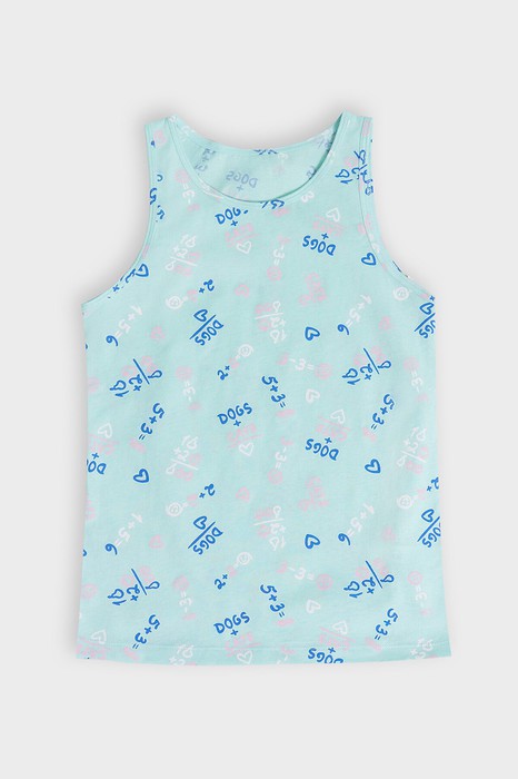 Майка для девочек, выполненная из трикотажной кулирки. Длина до середины бедер. Силуэт полуприлегающий. Горловина круглая. Универсальная майка!