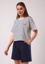 Укороченная футболка, облегающего силуэта. Втачной рукав. Горловина окантована.