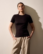 Boyfriend крой, укрепление по горловине спинки, круглый вырез. Горловина рибана. Отстрочка по горловине переда