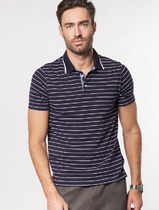 Футболка поло из фактурного полотна с содержанием хлопка, с манжетами. Функциональная планка на молнии. Модель дополнена нашивкой на спинке. Отличное решение для похода на работу и создания образа в стиле casual.