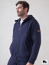 Модная куртка с капюшоном на молнии из плотного трикотажного полотна будет незаменимой вещью в гардеробе любого мужчины, благодаря функциональным карманам "кенгуру" и стильной отделке в виде нашивок.