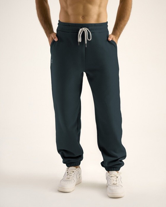Мужские брюки, джоггеры с резинкой по низу брюк. Пояс из основной ткани, внутри резинка,со шнурком. По поясу отстрочка, петли. Боковые карманы, боковые швы отстрочены.