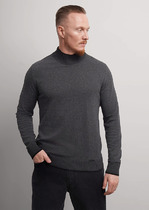 Мужской джемпер из смесовой пряжи с круглым вырезом горловины и втачным длинным рукавом. Изделие в оригинальной расцветке с комбинированной провязаной полосой и фирменной металлофурнитурой по низу. Подойдет для выходов в город с джинсами либо брюками.