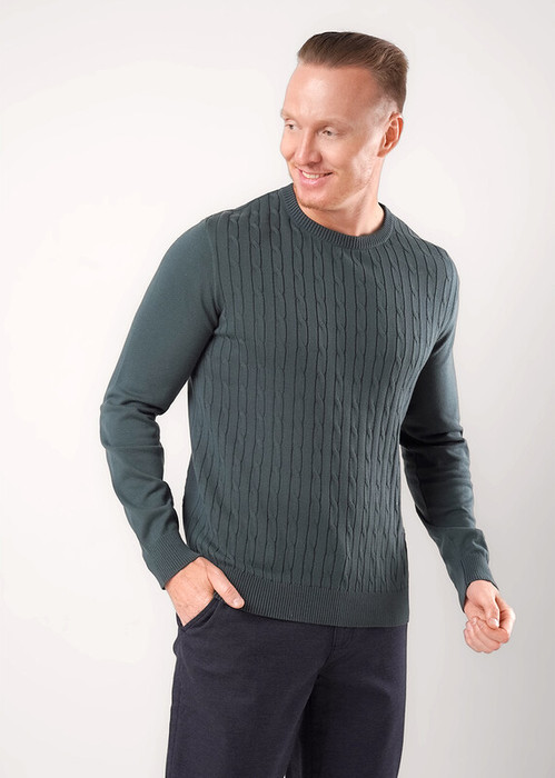Джемпер мужской из смесовой хлопковой пряжи с длинным рукавом и груглой горловиной. Изделие дополнено вязкой с классическим узором ""косы"". Прекрасно сохраняет тепло, отличное решение на холодное время года. Комбинируется с джинсами или брюками.
