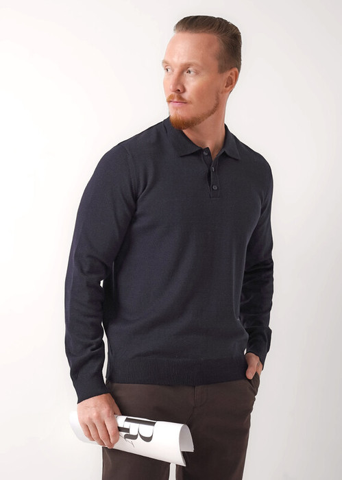 Вязаное поло на пуговицах с длинным рукавом, выполненное из смесовой пряжи, идеально сочетает стиль и комфорт. Модель связана плотным переплетением, что придает ей элегантность и современный вид, делая ее отличным выбором для прохладных дней.