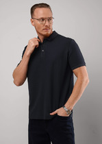 Мужская базовая футболка-поло. Модель дополнена вязанными отделками, фирменной фурнитурой и вышивкой. Изделие отлично сочетается с любыми брюками или джинсами.