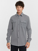Мужская куртка-рубашка выполнена из фактурного трикотажного полотна, свободного силуэта с отложным воротником и застежкой на кнопки. Модель дополнена накладными карманами. По низу рукава манжета. Отлично подойдет для работы и учебы.