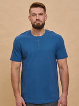 Фуфайка мужская из однотонного трикотажного полотна с коротким рукавом. Горловина круглая обработана обтачкой. Низ рукава обработан манжетами. Обтачка и манжеты изделия из контрастного отделочного полотна.