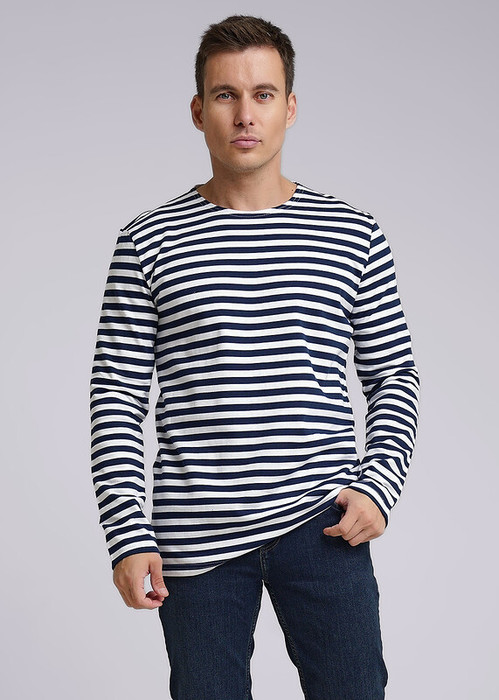 Фуфайка-тельняшка свободного кроя с длинным рукавом, с круглым вырезом горловины. Плотность полотна: 150гр/м2