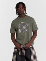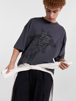 Фуфайка с коротким рукавом среднего объема, с оригинальным принтом, круглым вырезом горловины, которая оформлена обтачкой из рибаны.
