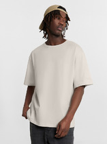 Фуфайка с коротким рукавом среднего объема, круглым вырезом горловины, которая оформлена обтачкой из рибаны.