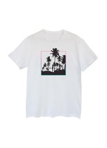 Футболка прямого силуэта. Горловина округлой формы обработана обтачкой из рибаны. Шов втачивания обтачки по спинке закрыт бейкой из основного полотна. Рукава втачные, корткие. Линия плеча слегка спущена.Нижние срезы футболки и рукавов обработаны швом вподгибку.