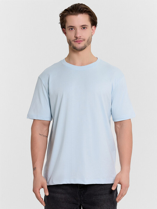 Футболка прямая свободная. Горловина округлой формы окантована бейкой в 4 сложения из рибаны. Горловина отстрочена на двухигольной плоскошовной машине.Плечо слегка спущено. Рукава втачные короткие. Низ футболки и рукавов обработан швом вподгибку.