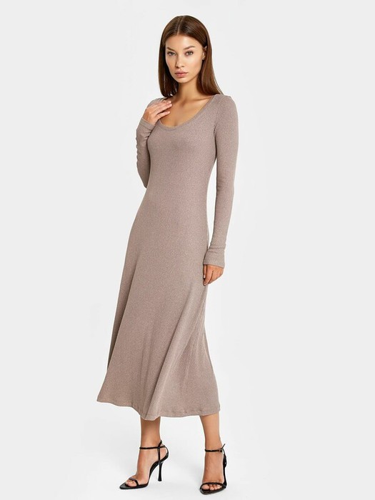 Рукав втачной, длинный. Спинка с центральным швом. Платье расширяется к низу. Длина платья ниже колена.