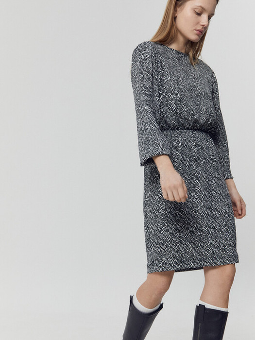 Рукав втачной, по окате с небольшой сборкой. Низ рукава подгибка с эластичной тесьмой внутри, образует сборку. Платье отрезное по талии с эластичной тесьмой, по талии присборено.