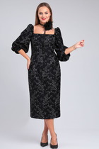 В правом боковом шве обработан разрез. Низ платья асимметричный.
