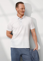 Джемпер мужской «поло» прилегающего силуэта из трикотажного полотна пике. Горловина круглой формы со стояче-отложным воротником из довяза. Центральная застежка планка на пуговицы. Шов горловины спинки обработан хб тесьмой. Рукав втачной, короткий. В боковых швах обработаны разрезы.