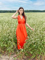 Длинный макси-крой создает гармоничный силуэт, делая фигуру более стройной. Нижний срез аккуратно обработан для сохранения формы изделия. Этот сарафан станет ярким акцентом на выпускном вечере, свадебном торжестве или романтической встрече, подчеркивая ваш чувство стиля и индивидуальность.