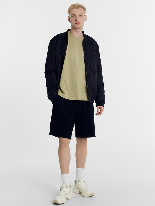 Шорты мужские прямого силуэта из трикотажного полотна футер. Пояс отрезной из основного полотна с эластичной тесьмой внутри. По поясу проложены отделочные строчки. По внутренней части пояса втавлен кругловязаный шнур. В боковых швах обработаны карманы с отрезным бочком, подкладка карманов кулирка.