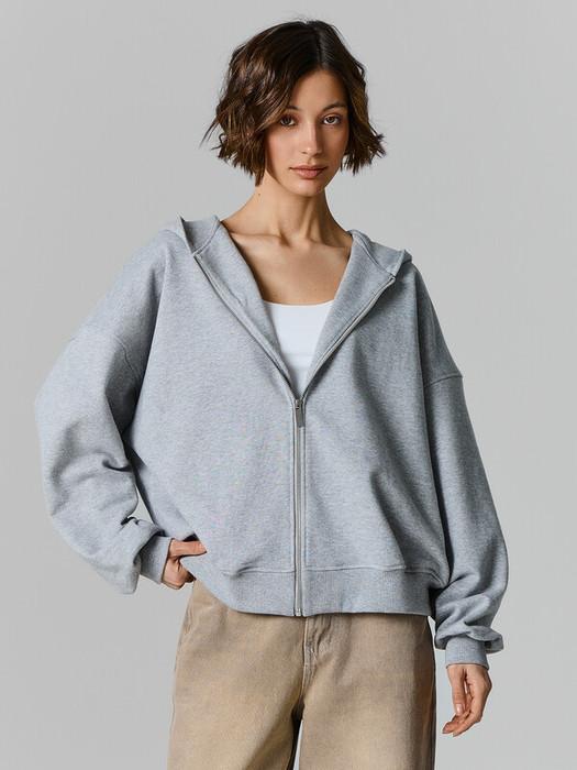 Толстовка свободного силуэта, оверсайз, укороченная. Горловина круглой формы с капюшоном. Капюшон со средним швом цельнокроеный с подкладкой. Шов втачивания капюшона по горловине окантован тесьмой хб.