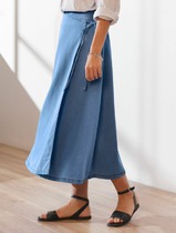 22.03 Vilatte Юбка миди на запах А-силуэта из джинсового лиоцелла D56.127 светл