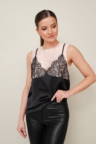 Топ спортивный с рельефными швами по груди ,v-образным вырезом .На плечеках двойные  завязки -спагетти  переплетенные на спине.