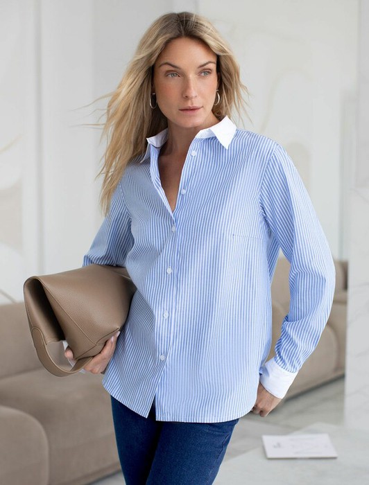 22.03 Vilatte Блузка прямого силуэта D29.226 голубой-белый