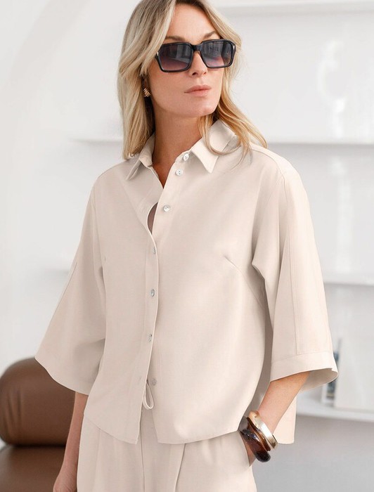 06.04 Vilatte Блузка с широкими рукавами 3/4 из плотного лиоцелла D29.354 кокос