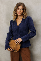 Стильная блузка темно-синего цвета выполнена из плотного лиоцелла.  Лиоцелл это более дорогой и экологичный вариант вискозы, очень прочный и шелковистый. Модель дополнена широкими рукавами длиной 3/4, создающими модный акцент. Классический отложной воротник придает блузке официальность и идеально подходит для ношения, где требуется офисный дресс-код. А лаконичные лампасы вдоль рукавов в тон основного цвета подчеркивают трендовый характер блузки. Это ненавязчивый, но заметный акцент, который выделяет модель среди стандартных классических блузок. Свободный крой не сковывает движений и отлично садится по фигуре даже на большие размеры, скрывая возможные недостатки. Эта легкая рубашка с застежкой на пуговицы идеальный выбор для комфорта и стиля в теплое время года, она идеально подойдет для любого повода.