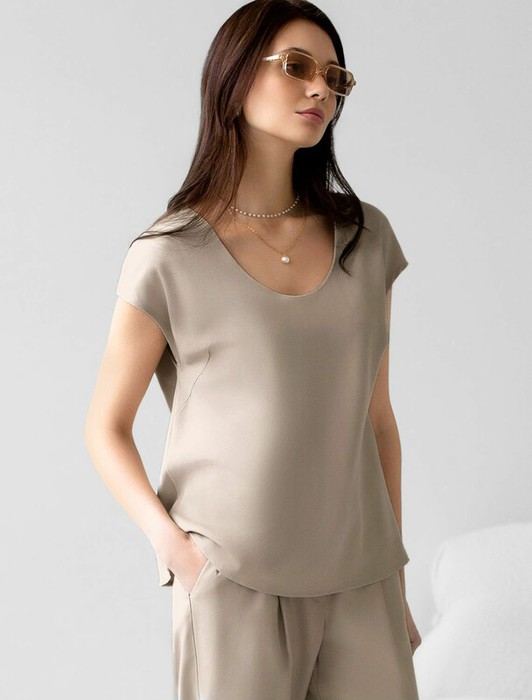 Элегантная блузка темно-синего цвета скроенная по косой выполнена из плотного лиоцелла. Лиоцелл это более дорогой и экологичный вариант вискозы, очень прочный и шелковистый. Эта повседневная блузка с трендовым U-вырезом создана для легкого и утонченного стиля. Мягкие линии кроя создают невероятно эффектный образ, который подчеркивает естественную красоту, не стесняя движений, а свободный фасон дарит ощущение абсолютного комфорта и уверенности. Блузка красиво драпируется при движении, создавая летящий, воздушный эффект. Эта легкая блуза с коротким рукавом идеальный выбор для комфорта и стиля в теплое время года, она будет идеальна для любого повода.