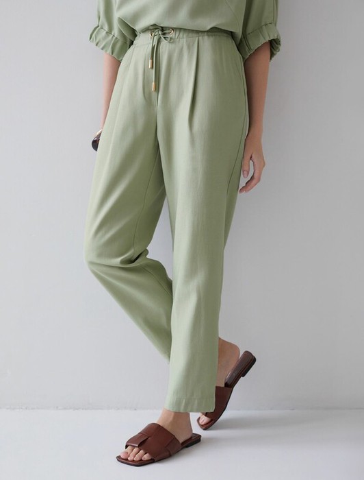 22.03 Vilatte Брюки бананы с поясом на резинке из плотного лиоцелла D24.311 зел